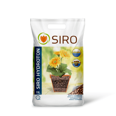 Siro® Hydroton expanded clay is specially developed for plants through a unique manufacturing process that uses selected raw materials and produces optimized 8-13 mm spheres with ideal and homogeneous porosity. Expanded clay ensures drainage that is suitable for the plants' needs.