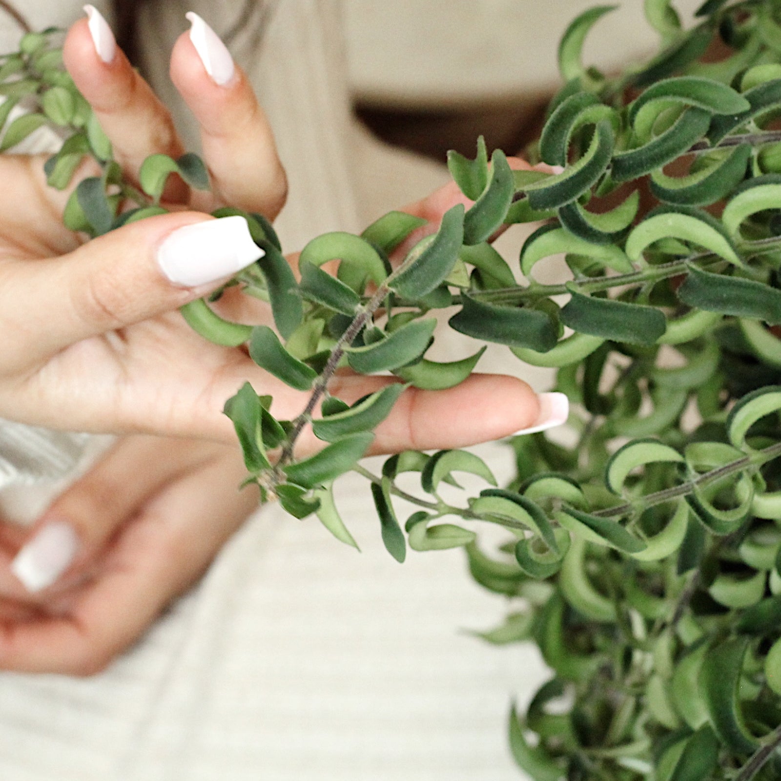 The combination of the Lipstick plant with the pink Fortuna pot results in a harmonious and expressive ensemble, perfect for those seeking a hanging plant with personality, symbolism, and a strong decorative impact in indoor spaces.