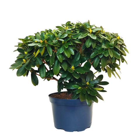 Native to temperate regions of Asia, Europe and North America, Rhododendron belongs to the Ericaceae family, along with Pieris and azaleas. The 'Cosmopolitan' variety is particularly valued for its balanced growth and its ability to withstand cold weather.