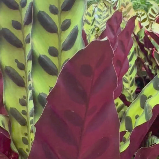 La Calathea lancifolia es una planta de interior distintiva y vibrante, apreciada por sus hojas alargadas y onduladas con patrones verdes y violáceos en la parte inferior. Con su follaje exótico, esta planta es perfecta para añadir un toque de naturaleza tropical al ambiente.
