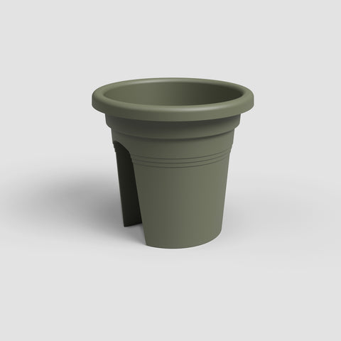Está diseñado para ser utilizado exclusivamente en el balcón y tiene 2 sujetadores ajustables incluidos. Es una maceta elaborada con materiales reciclados, de alta resistencia, lo que permite usarla y reutilizarla varias veces. Está disponible en varios colores con acabado mate.