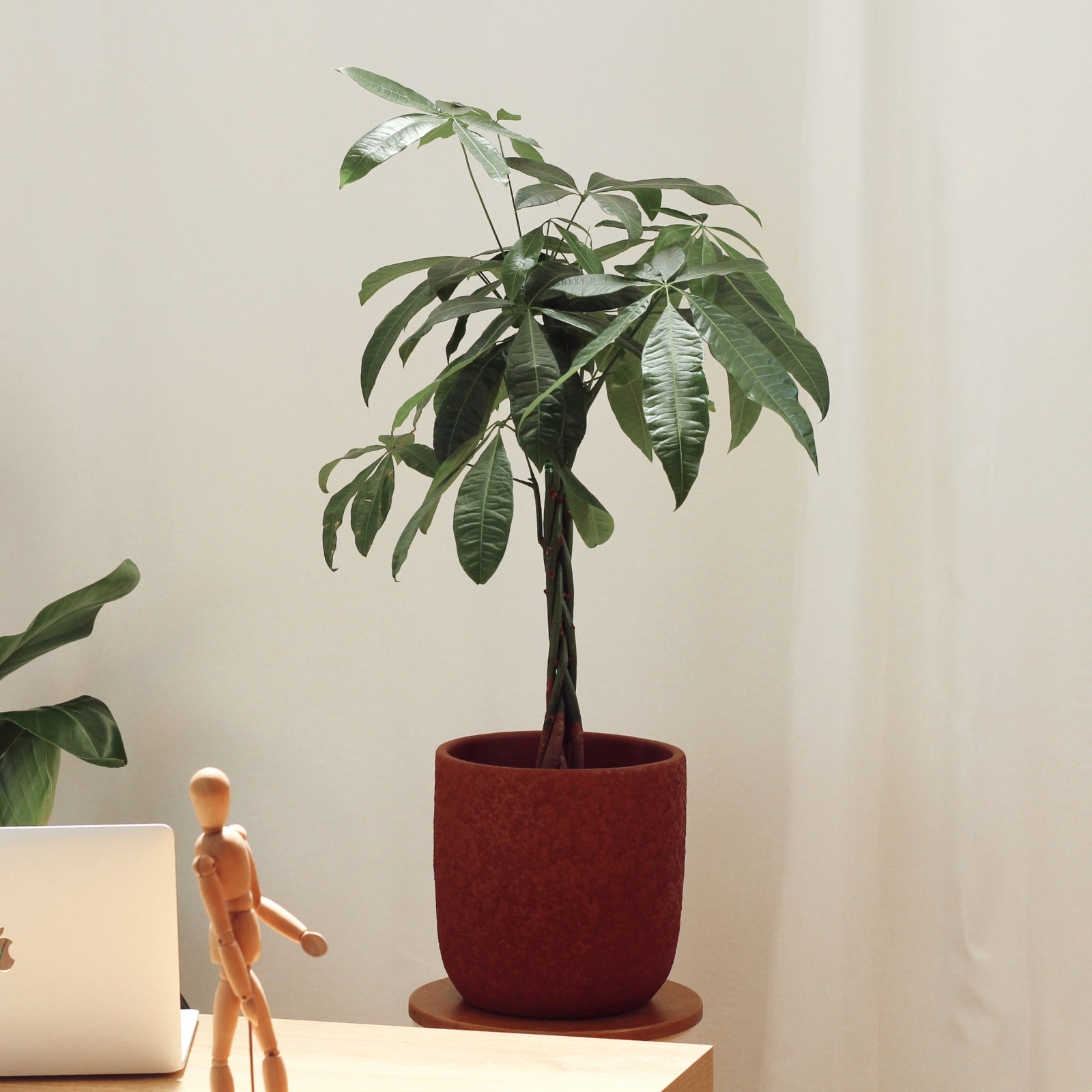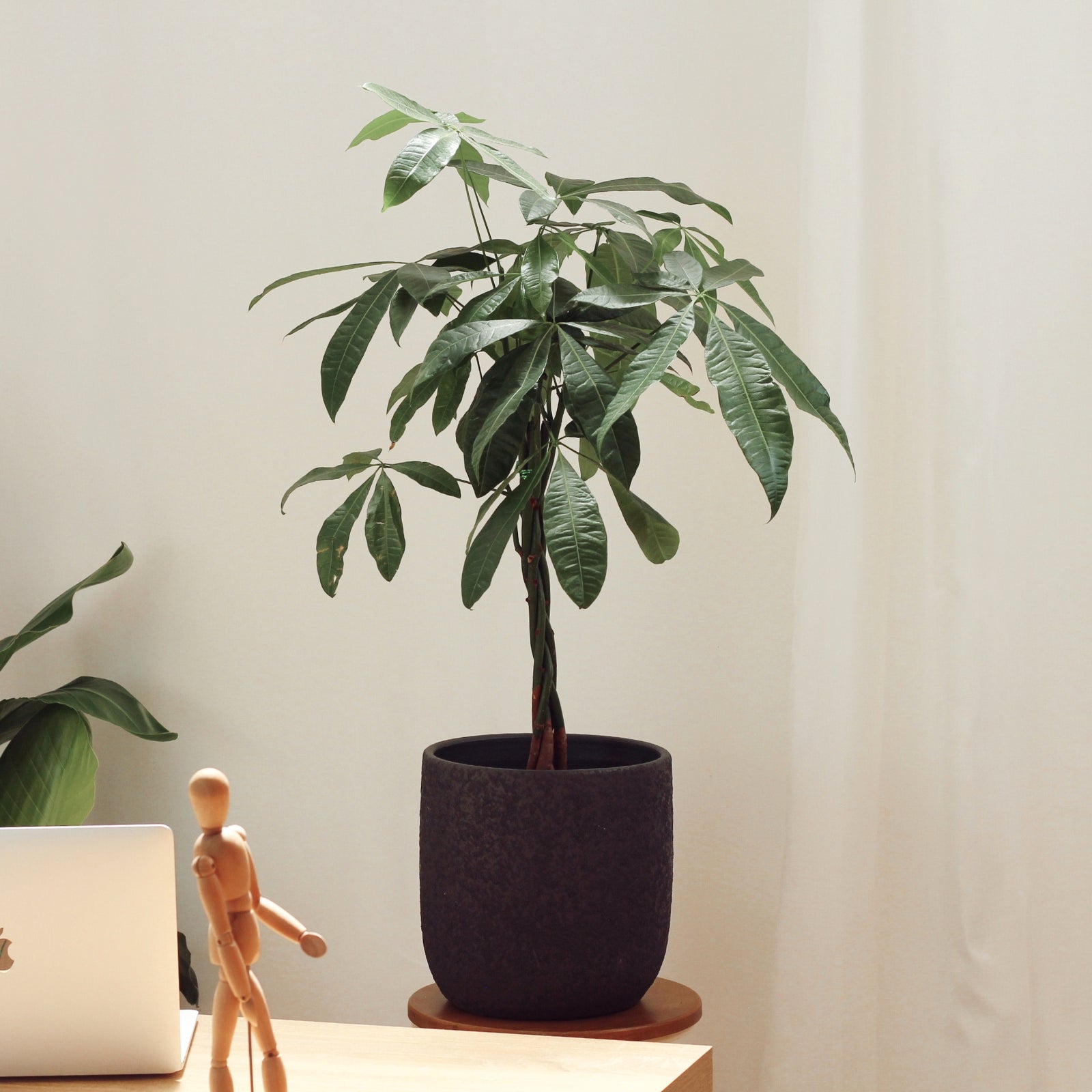 Este conjunto exclusivo une a energia positiva da Pachira aquatica, conhecida como Árvore do Dinheiro, à força estética do vaso Atlas, criando uma peça marcante para transformar ambientes de estudo e de trabalho.