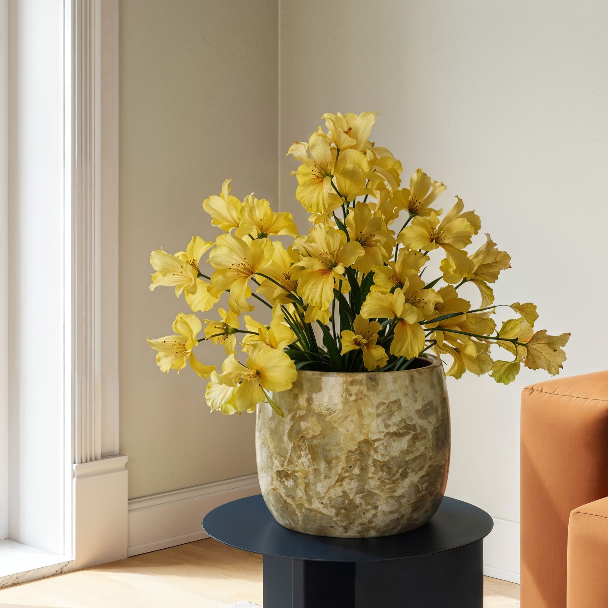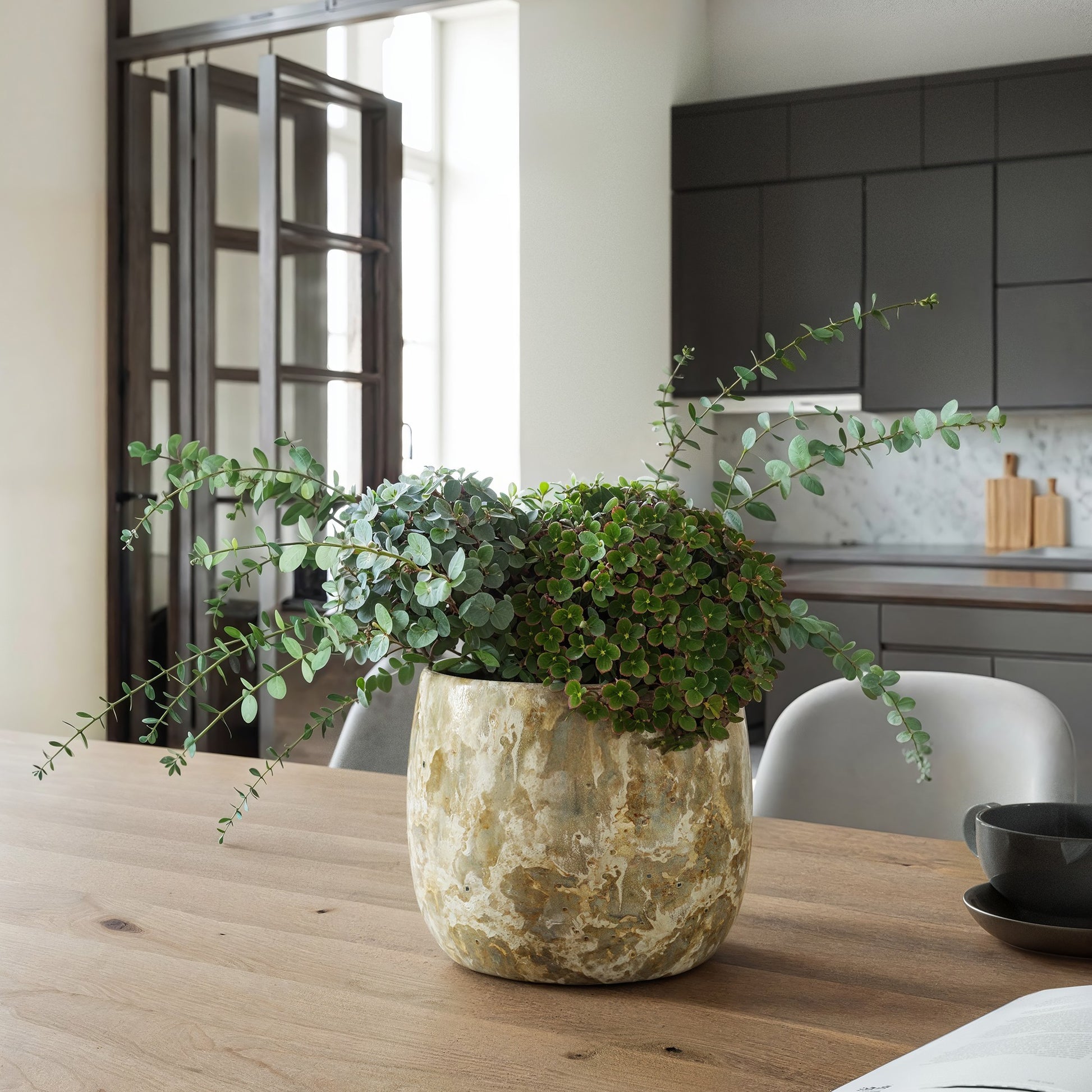 Cada vaso é fabricado à mão em Portugal por mestres ceramistas, garantindo que não existem duas peças iguais. O acabamento vidrado, enriquecido por uma textura subtil, destaca as nuances e imperfeições naturais que tornam cada vaso único. A paleta de cores orgânicas harmoniza-se com qualquer estilo de decoração, desde ambientes minimalistas e contemporâneos até espaços rústicos e acolhedores.